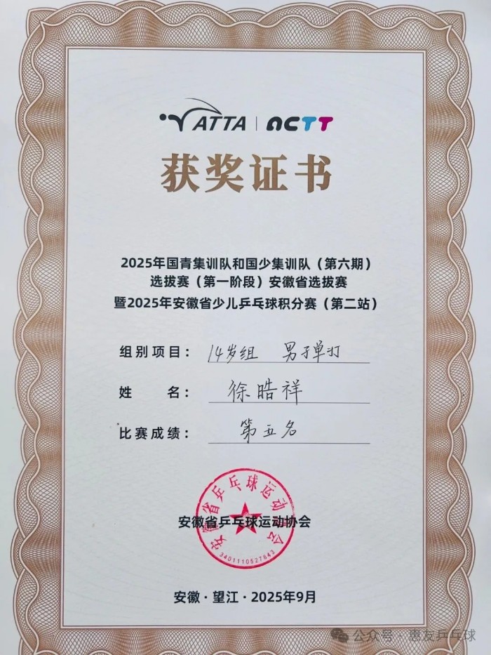 The selection competition of the 2025 National Youth and Youth Training Teams (Sixth phase) in Anhui Province has come to an end. Our team members, under the guidance of the coach, dared to fight and compete, lived up to everyone's expectations, and achieved good results. Congratulations to them!